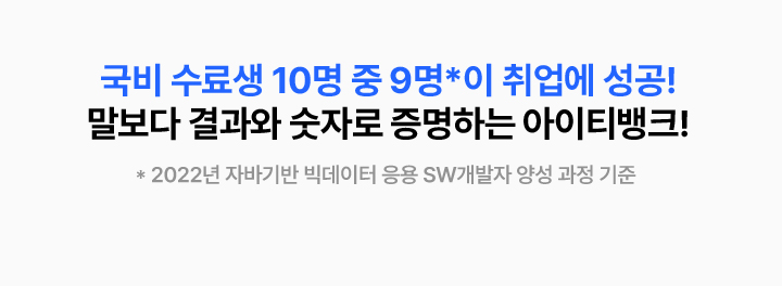 빅데이터 플랫폼 구축을 위한 프로그래밍 언어 활용, DB시스템 구축, 웹 융합 SW 개발 기술 등을 습득하여 빅데이터 솔루션 및 데이터 분석 기법을 활용한 SW전문가로 취업하는 과정
