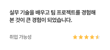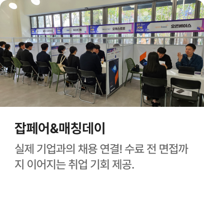 과정중에는 취업지원상담, 취업특강이 진행되며, 과정 수료 후에는 6개월간 사후취업관리를 받으실 수 있습니다.